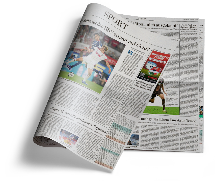 Gerade der Sportteil – morgens beim Kaffee und Brötchen – ist für viele Leser*innen festes Wochenendritual. Genau hier setzte die Score Media Group an: mit aufmerksamkeitsstarken Anzeigen in der Sportberichterstattung, abgestimmt auf die Bundesligaspieltage und lokal ausgesteuert.