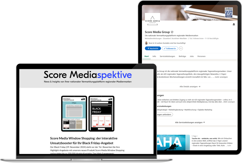 Verpassen Sie keine News & Insights zu unseren Produkten und regionalen Medienmarken. Abonnieren Sie unseren Newsletter oder folgen Sie uns bei LinkedIn.